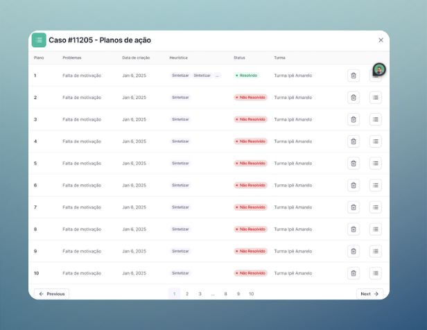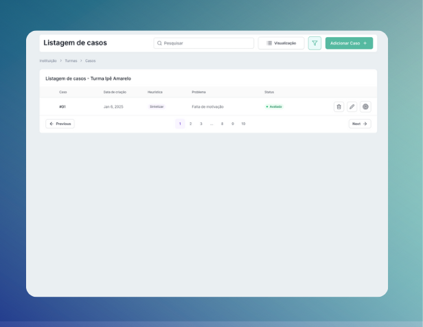 A Plataforma de Inteligência Aplicada da TriMindTech organiza instituições, turmas e casos em um fluxo simples, guiando o professor da formulação do problema à avaliação dos resultados. Cada funcionalidade soma pensamento humano, lógica algorítmica e heurísticas criativas para resolver problemas educacionais de forma eficiente.